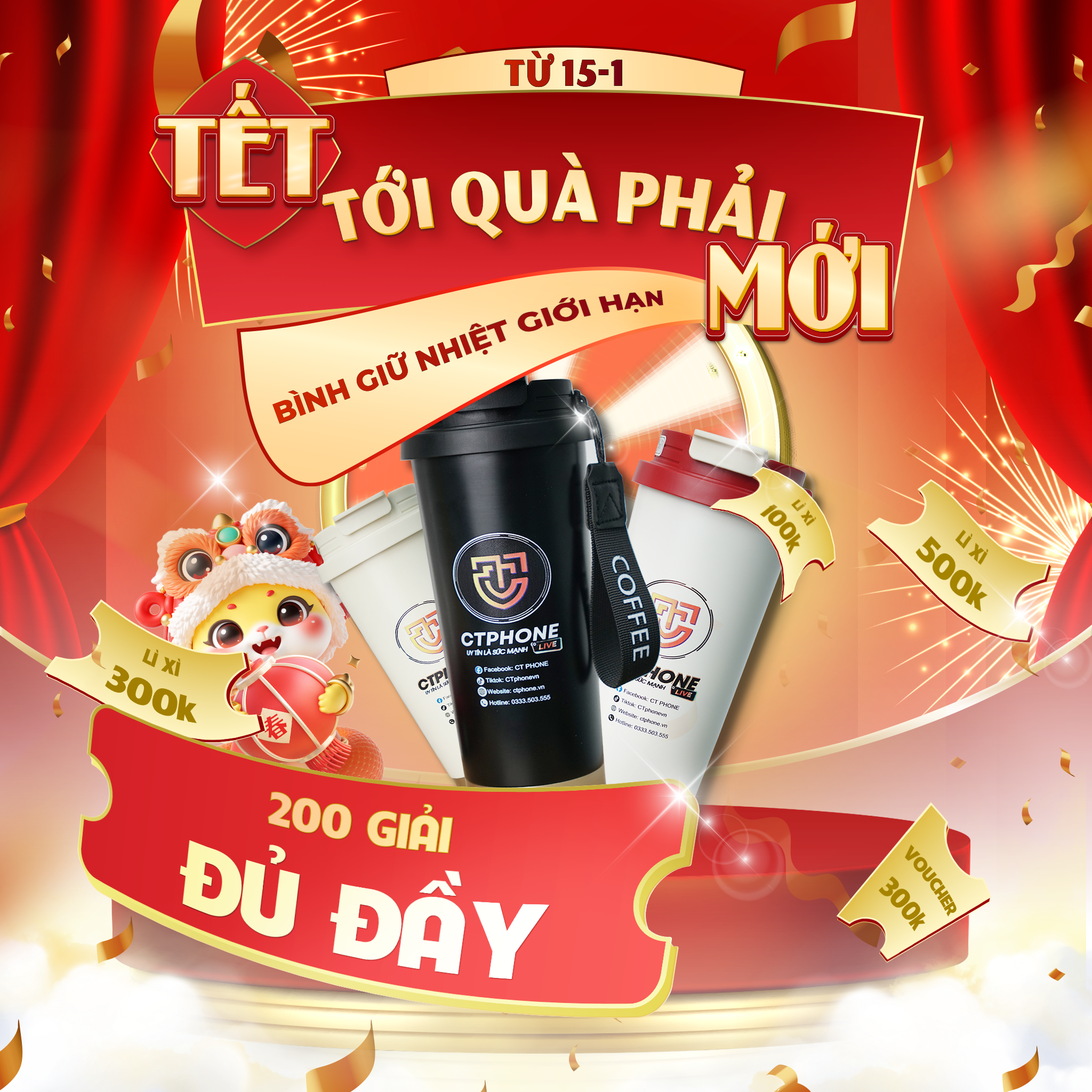 200 giải ĐỦ ĐẦY :  Bình giữ nhiệt phiên bản giới hạn CTPHONE