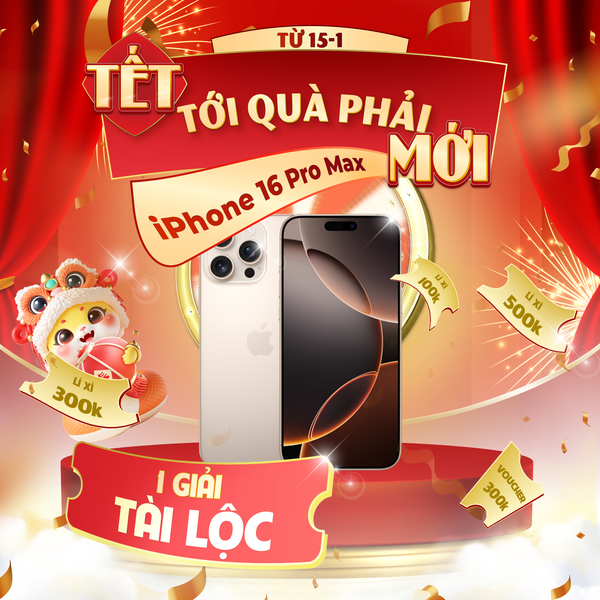 1 giải TÀI LỘC :  iPhone 16 Pro Max